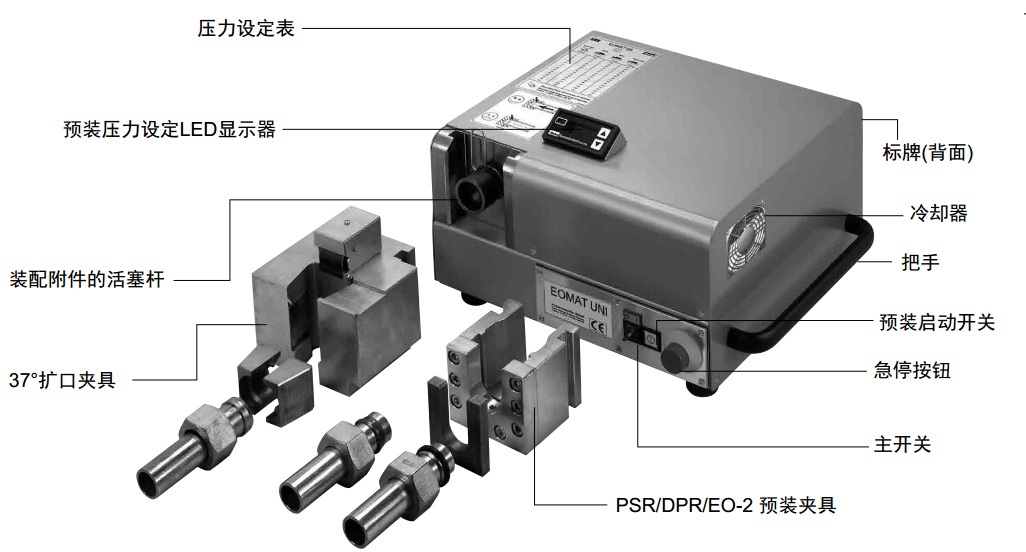 EOMAT UNI是一臺電液控制的設(shè)備,主要用于EO-2和 PSR/DPR預(yù)裝, Triple-Lok® 37°擴口。