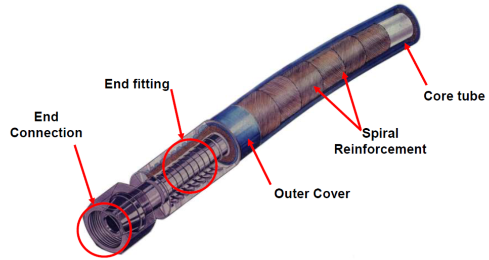 派克Polyflex超高壓熱塑軟管主要由耐液體的內膠層、中膠層、2或4或6層或8層鋼絲纏繞增強層、外膠層組成,內膠層具有使輸送介質承受壓力,保護鋼絲不受侵蝕的作用,外膠層保護鋼絲不受損傷,鋼絲(φ0.3--3.0增強鋼絲)層是骨架材料起增強作用。派克Polyflex超高壓熱塑軟管結構之抗壓強度遠超德國和國跡標準。